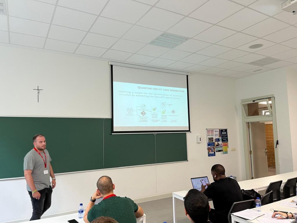 Además, Javier Romero (UEx) presentó el trabajo titulado «QCRAFT Quantum Developer Interface: a tool for continuous deployment of quantum circuits», una herramienta orientada al despliegue continuo de circuitos cuánticos, mientras que Ignacio Gracia (UCLM) expuso la propuesta «Mutation-Based Quantum Software Testing», centrada en el uso de técnicas de mutación para la verificación y mejora de la calidad del software cuántico.